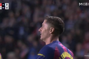 拉师傅长传到禁区,莱万门前垫射破门达成双响