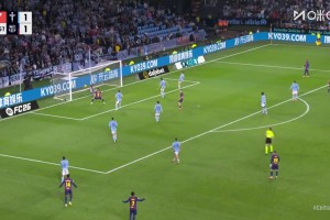 巴萨3-2塞尔塔!拉什福德横传莫里巴解围失误,亚马尔破门