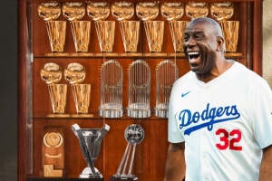道奇队小老板!美媒晒图祝贺魔术师:生涯已经拿到16次总冠军!