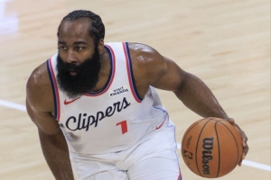 哈登近5场场均24.6分5.8板8.6助1.6抢断 三项命中率49/43/94%