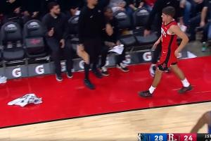 防不住就算了!谢泼德大空位扔出过桥!随后被换下!