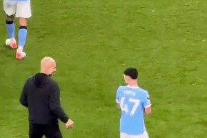 瓜迪奥拉赛后找福登时偷偷从背后给了脑袋一巴掌~