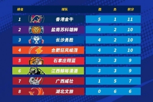 长沙勇胜在与盐南苏科雄师的狮王争霸中落败,目前与盐南同为4胜2负积10分、同样积分的还有合肥狂风峻茂。广西威壮战胜湖北文旅赢得赛季首胜,目前在积分榜上领先湖北1分。