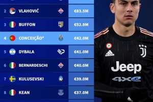 体育资讯7月26日讯 尤文今夏正式从波尔图正式签下小孔塞桑,加上此前的租借费,小孔塞桑的转会总价达4200万欧元。德转列出尤文图斯队史转会最贵U23球员榜,其中德里赫特以8550万欧元排名榜首。