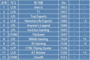 体育资讯8月22日讯 韩网粉丝根据目前比赛的赛果,排列出了全球战队战力榜,LCK前四GEN、T1、HLE、KT,LPL前四TES、AL、iG、BLG。