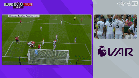 体育资讯8月25日讯 英超第2轮,曼联客场出战富勒姆,比赛第35分钟,富勒姆球员巴锡抱摔芒特,裁判查看VAR后判罚点球,B费点球打飞了。