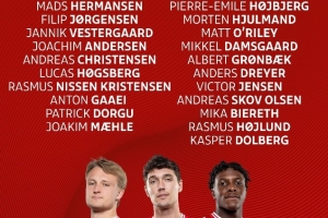 后卫:维斯特高(莱斯特城)、约阿西姆-安德森(富勒姆)、安德烈亚斯-克里斯滕森(巴萨)、霍格斯伯格(斯特拉斯堡)、拉斯姆斯-尼桑-克里斯滕森(法兰克福)、安东-加埃(阿贾克斯)、多古(曼联)、梅勒(沃尔夫斯堡)