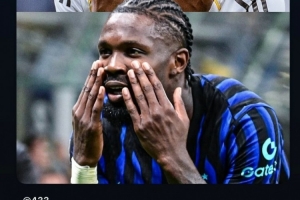小图拉姆进球后做出了与好友姆巴佩类似的哭哭庆祝动作,姆巴佩社媒转发对比图片,并@小图拉姆。
