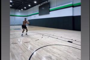 想啥呢!奎克利拿到篮板跳起没出球走步违例