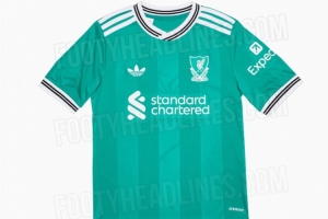阿迪达斯为利物浦设计的2025-26赛季第三球衣采用了薄荷绿(官方称为“海绿色”),并带有白色装饰。这款球衣还采用了现代化的经典利物浦队徽。