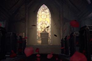 这张截图中的教堂,正是《暗黑破坏神4》序章剧情中,主角进入村庄后被邀请前往的场所。在这个教堂内,玩家会看到彩绘玻璃窗,并在此触发莉莉丝降临的过场动画。