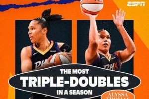 此外,托马斯生涯至今18次三双,WNBA至今只出现过47次三双,托马斯一人占到接近4成。