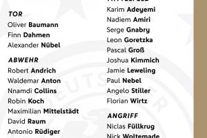 体育资讯08月27日讯 德国世预赛名单公布,维尔茨、基米希在列,沃尔特马德、格纳布里入选。此前重伤的穆西亚拉缺席,哈弗茨因为膝盖受伤同样缺席。