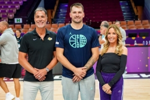 在今天的赛前训练中,球队迎来了两位特别的人物——湖人总经理佩林卡和珍妮-巴斯。两人也是亲自前往欧洲为正在备战欧锦赛的东契奇助威。