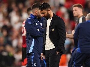 体育资讯8月28日讯 在点球大战被英乙球队格林斯比淘汰出联赛杯后,曼联主帅阿莫林在接受采访时向球迷表达歉意。