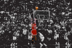 1997年总决赛第一场,邮差被皮彭“星期天不上班”,罚球失手,乔丹射中绝杀,回头霸气挥拳。