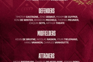 后卫:卡斯塔涅(富勒姆),德巴斯特(葡体)、德库耶佩(布鲁日)、德温特(热那亚)、梅切勒(布鲁日)、穆尼耶(里尔)、西斯(布鲁日)、泰特(法兰克福)