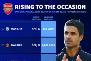 体育资讯08月31日讯 据德转统计,阿森纳已有超过2年未在英超中输给其他5支“BIG6”球队,在“BIG6”球队身上相互取得的积分也位列第一。