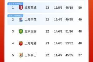 体育资讯08月31日讯 中超第23轮部分比赛结束,最新积分榜方面:蓉城凭借对海港的主场大胜成功登顶,争冠对手申花、海港本轮均输球分别居第2、4名,第3名的国安目前也客场大比分落后排名第5的山东泰山。