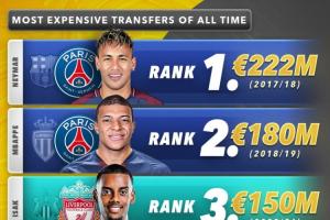 足坛最贵转会费TOP10: