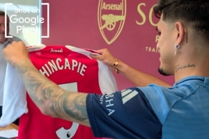 阿森纳官方社媒晒出因卡皮耶身穿本队球衣拍摄宣传照的视频,配文:“首次身穿著名的红白战袍亮相。”
