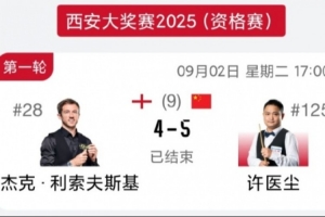 体育资讯9月2日讯 2025斯诺克西安大奖赛,职业新人许医尘5-4逆转战胜利索夫斯基。