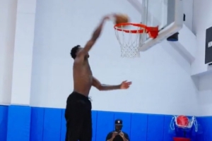 视频中马瑟林赤裸着上身进行有球训练,他的打板大战斧劈扣让人赏心悦目,节奏变化下的跳投也是把握十足。