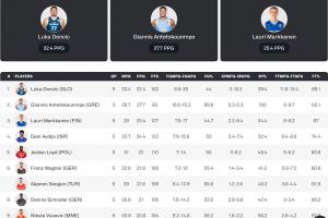 小组赛得分榜,东契奇场均32.4分傲视群雄,字母哥小组赛场均得分排名第二,命中率更是来到夸张的69.6%。
