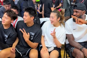努力坚持!杨瀚森赛前热身与助教直接交流 场上可以摆脱翻译了