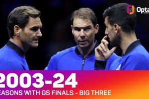 据OPTA统计,这是2002年以来首次,单赛季四大满贯决赛都没有费德勒、纳达尔、德约科维奇。