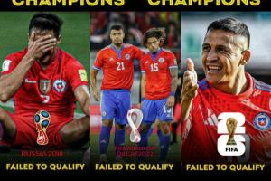 而智利17战仅得10分提前出局,无缘美加墨世界杯。曾经在2015、16年连夺两届美洲杯的智利,连续3届无缘世界杯决赛圈,令人唏嘘。
