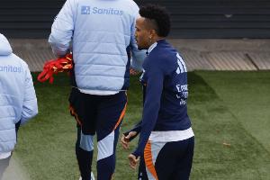 然而,在伯纳乌球场惨败后的第二天,另一段比赛画面引起了广泛讨论。上半场,孔多比亚在禁区外射门时,米利唐用手臂将球挡向队友赫伊森,后者也用手触到了球。