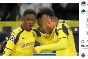 体育资讯9月23日讯 奥巴梅扬更新社媒动态,祝贺前队友登贝莱获得金球奖。