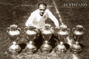 1953年9月23日,迪斯蒂法诺在对阵南锡的热身赛中首次代表皇马出场,他头球攻入个人皇马生涯首球。迪斯蒂法诺于1953年-1964年效力皇马,在396场正式比赛中攻入308球,这位史上最出色球员带队获得欧冠五连冠,他还获得1次洲际杯冠军、2次拉丁杯冠军、8次联赛冠军等荣誉。个人层面,迪斯蒂法诺获得5次西甲金靴。