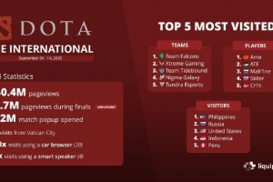 体育资讯9月24日讯 液体WIKI分享了他们在TI14期间的流量;一共是99.5TB,页面一共被浏览了4040万次,总决赛期间页面被浏览了670万次;