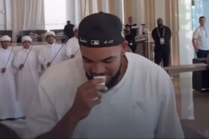 尼克斯全队抵达阿布扎比受到热烈欢迎,他们将在这里和76人进行两场季前赛的比赛。