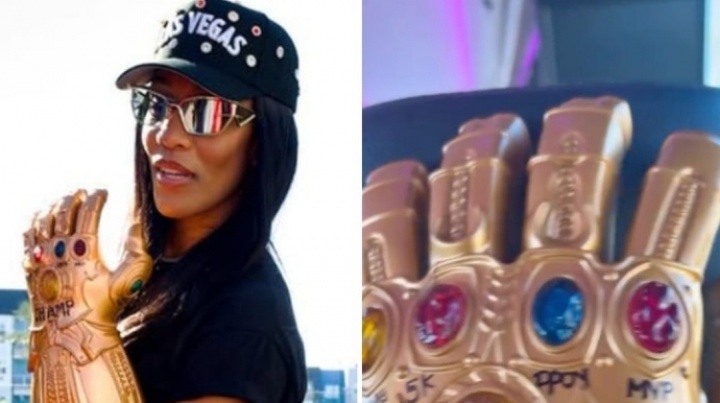阿贾-威尔逊戴上了无限手套,今年她包揽DPOY、MVP、FMVP等荣誉,WNBA历史第一人。