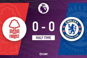 上半场伤停补时1分钟,半场结束,切尔西暂0-0诺丁汉森林。