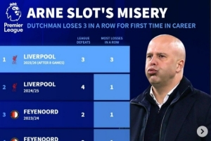 体育资讯10月20日讯 在本轮英超,利物浦1-2不敌曼联。这也是斯洛特执教生涯首次遭遇联赛三连败,以下为他执教具体情况:
