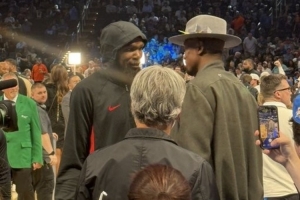 球队名宿伊巴卡也来到现场见证这一时刻,赛前他和前队友杜兰特寒暄。