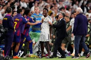 体育资讯10月27日讯 皇马在本轮西甲焦点战2-1力克巴萨,维尼修斯在被换下后情绪激动不已。记者Javier Herráez消息,皇马俱乐部不会因此介入处罚维尼修斯。