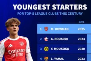 本世纪欧洲五大联赛俱乐部最年轻首发