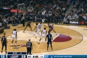 危险!威少被断回防将米切尔推翻在地 一级恶犯!