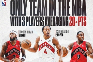 联盟仅此一队!巴恩斯&巴雷特&莺歌三人场均得分均超20分!