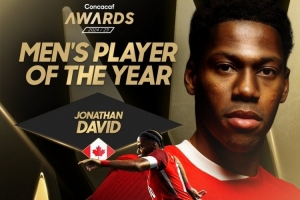 官方:戴维当选中北美及加勒比海足联年度最佳男足球员