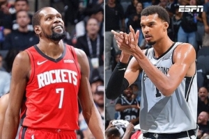 解说:KD最后几球的处理有些问题 但更严重的是火箭对篮板的控制