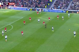 热刺1-1扳平曼联!芒特传球被断,特尔背身单打德里赫特破门
