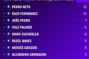 佩德罗-内托2025年英超进球、助攻皆5+,切尔西队内唯一