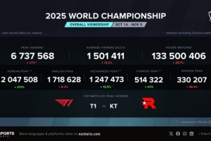S15总决赛T1对阵KT观众峰值达673w,不及24年 T1vsBLG