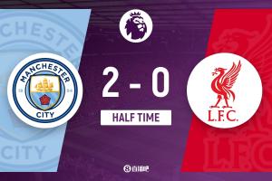 体育资讯11月10日讯 北京时间11月10日00:30,英超联赛第11轮曼城迎战利物浦的比赛在伊蒂哈德球场进行,上半场多库造点,哈兰德主罚点球被神勇扑出,努内斯助攻哈兰德头球首开记录,范戴克破门无效,冈萨雷斯远射建功,半场结束,曼城2-0利物浦。